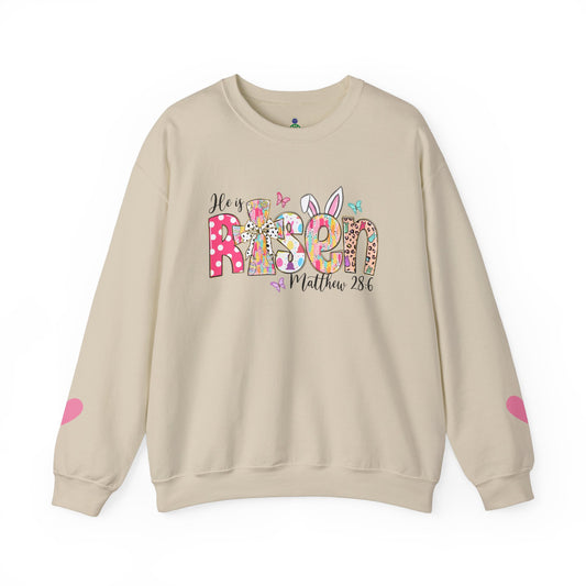 He Is Risen Crewneck Sweatshirt - Colorful Easter Clothing for Men & Women